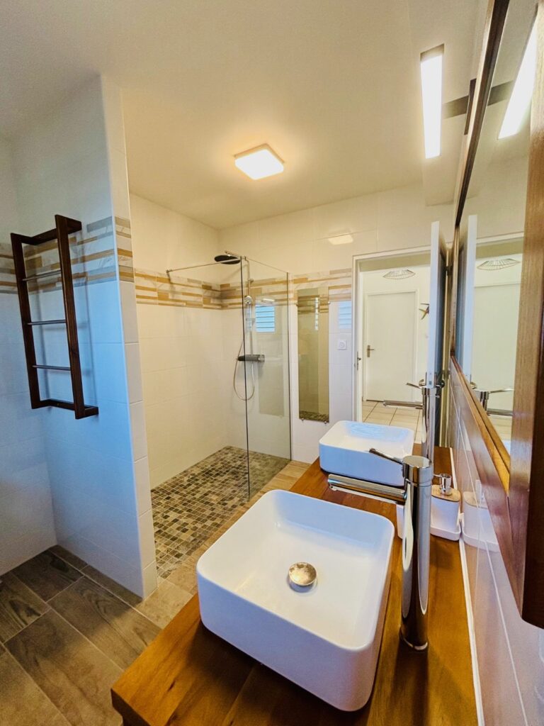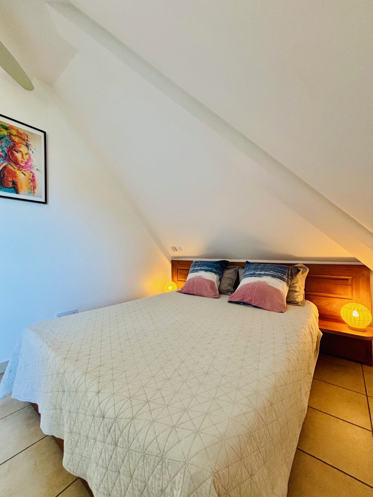 À l’intérieur, le Guétali comprend un séjour lumineux avec coin repas et salon, une cuisine parfaitement équipée, deux chambres confortables, une salle d’eau moderne avec douche à l’italienne et des toilettes séparées. Cette location de vacances à Saint-Leu peut accueillir 4 personnes et une 5ᵉ en couchage supplémentaire.